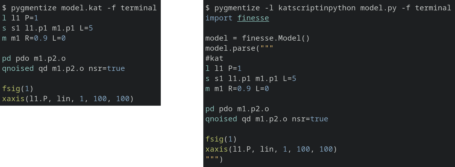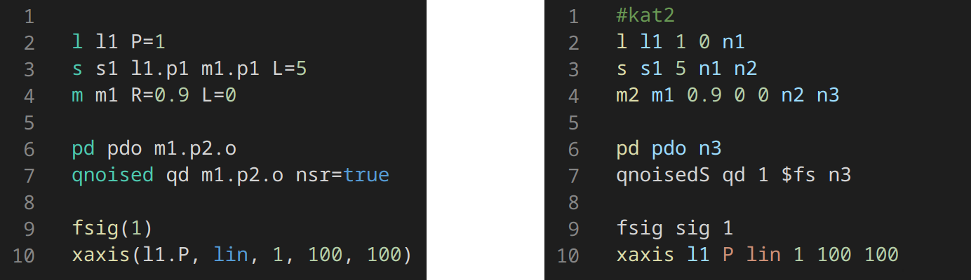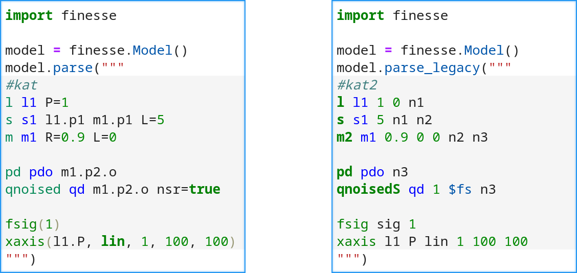 files. It defaults to Finesse 3 style KatScript; to highlight Finesse 2 style