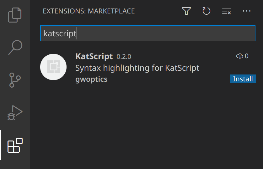 The Visual Studio Code extension provides syntax highlighting of KatScript in .kat